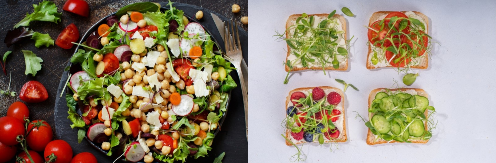 1. สลัดผักแบบไมโคร: ผสมผักสดในเมนูสลัดกับไมโครกรีน เช่น เรป มัสตาร์ด อัลฟาฟ่า เพื่อเพิ่มรสชาติให้กับสลัดของคุณ